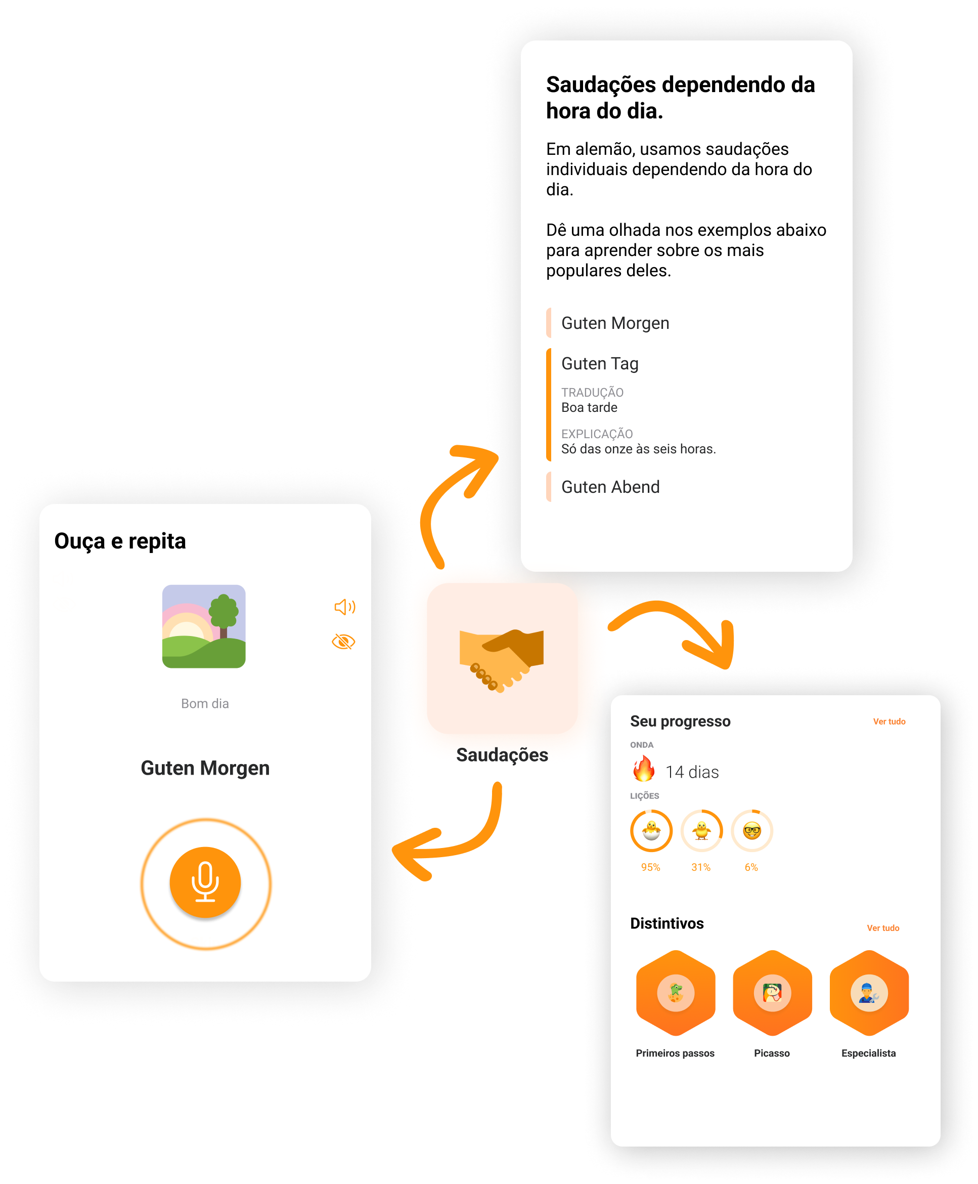 Pratique suas habilidades de alemão onde quer que esteja com nossa interface fácil de usar, recursos de aprendizagem acessíveis e modo escuro compatível.